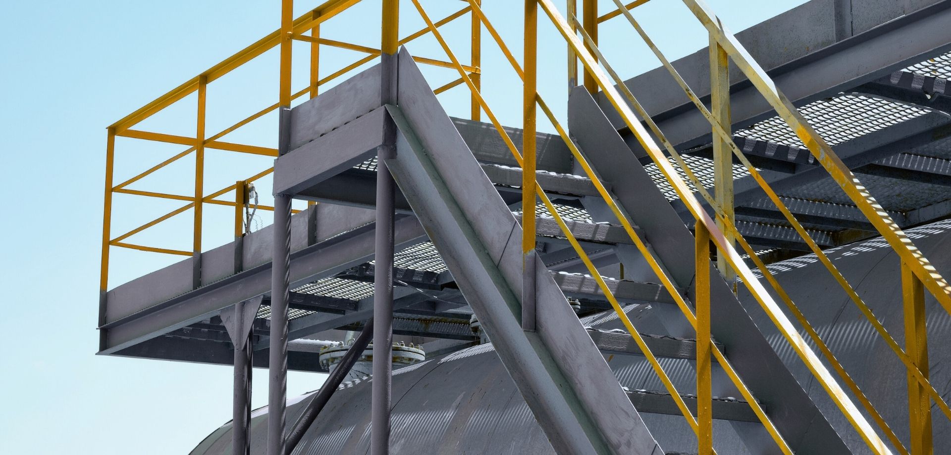 Heavy-duty steel stairs for factories, warehouses, and industrial facilities. Stainless steel components are selectively used with galvanised or painted structures for durability and cost efficiency.